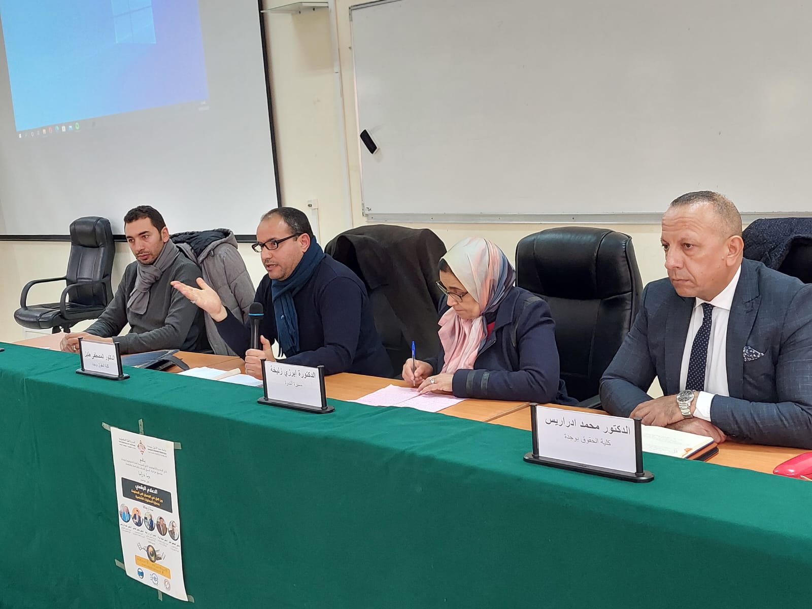 عرف هذا اللقاء مشاركة عدد من الأساتذة تخصص القانون، وهم الأستاذ محمد ادراريس والأستاذ المصطفى طايل عن كلية الحقوق بوجدة بالإضافة إلى الاستاذ محسن قضاض عن المدرسة العليا للتكنولوجيا بوجدة، والأستاذة زليخة ايرزي عن كلية العلوم التي قامت بتسيير هذه الندوة الدراسية.