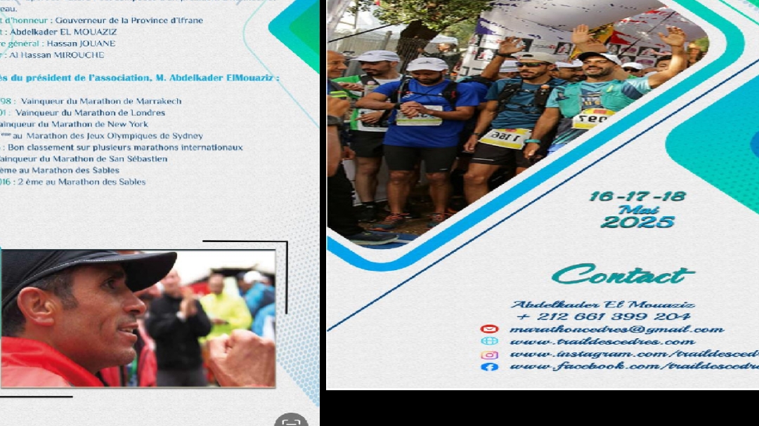 Sous l’égide de La Fédération Royale Marocaine de ski et montagne, l’association sport et nature et la province d’Ifrane en collaboration avec le Conseil provincial de tourisme d’Ifrane, le Conseil Provincial d’Ifrane et la Commune d’Ifrane organisent du 16 au 18 Mai 2025, la 16ème édition du Trail des cèdres