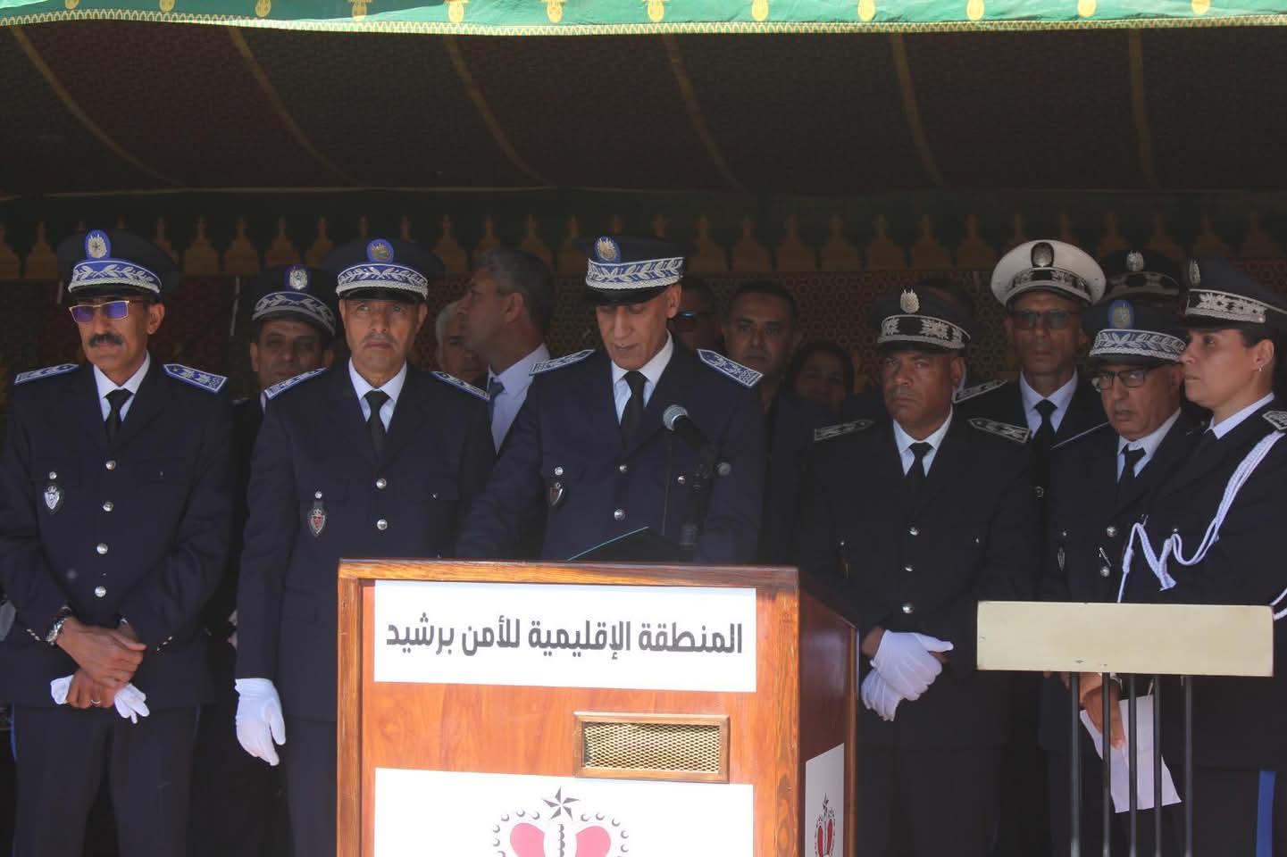 وقد ترأس عامل إقليم برشيد، السيد نور الدين أوعبو، هذا الحفل الذي أقيم بمقر المنطقة الإقليمية للأمن، بحضور رئيس المجلس الجماعي، رئيس المجلس الإقليمي، رئيس المحكمة الابتدائية، باشا المدينة، إلى جانب عدد من الشخصيات المدنية والعسكرية، وممثلي السلطات القضائية والإدارية، ورؤساء المصالح الخارجية، إضافة إلى فعاليات جمعوية وإعلامية ومنتخبين محليين.