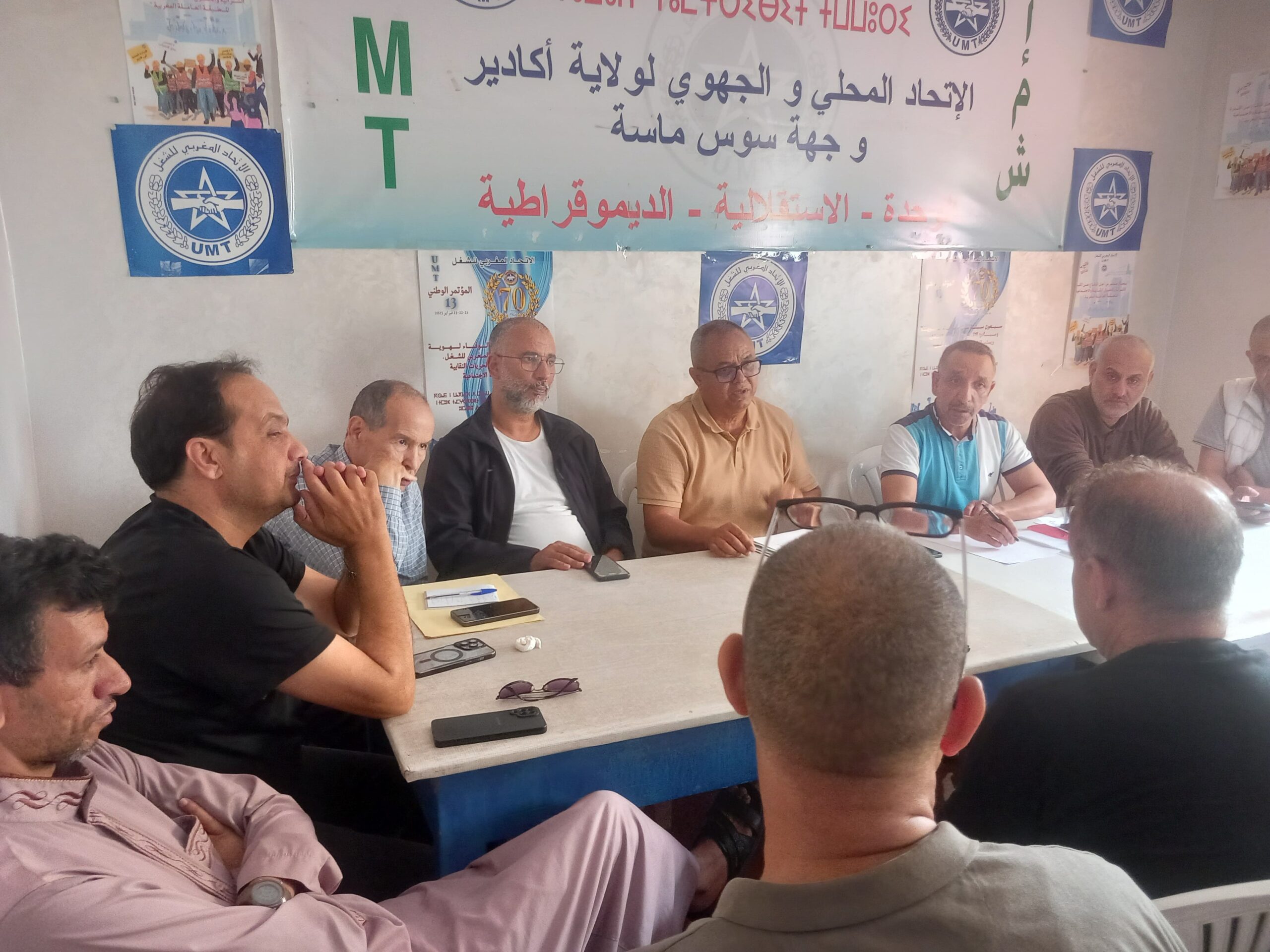 اجتمع المجلس النقابي للاتحاد المحلي والجهوي لأكادير يوم الأحد *25* *ماي 2025* في دورة استثنائية للوقوف عند الترتيبات النهائية لافتتاح مقر الإتحاد الجديد وكدا عقد مؤتمره الحادي عشر بحضور ممثلي القطاعات النقابية بجهة سوس ماسة.