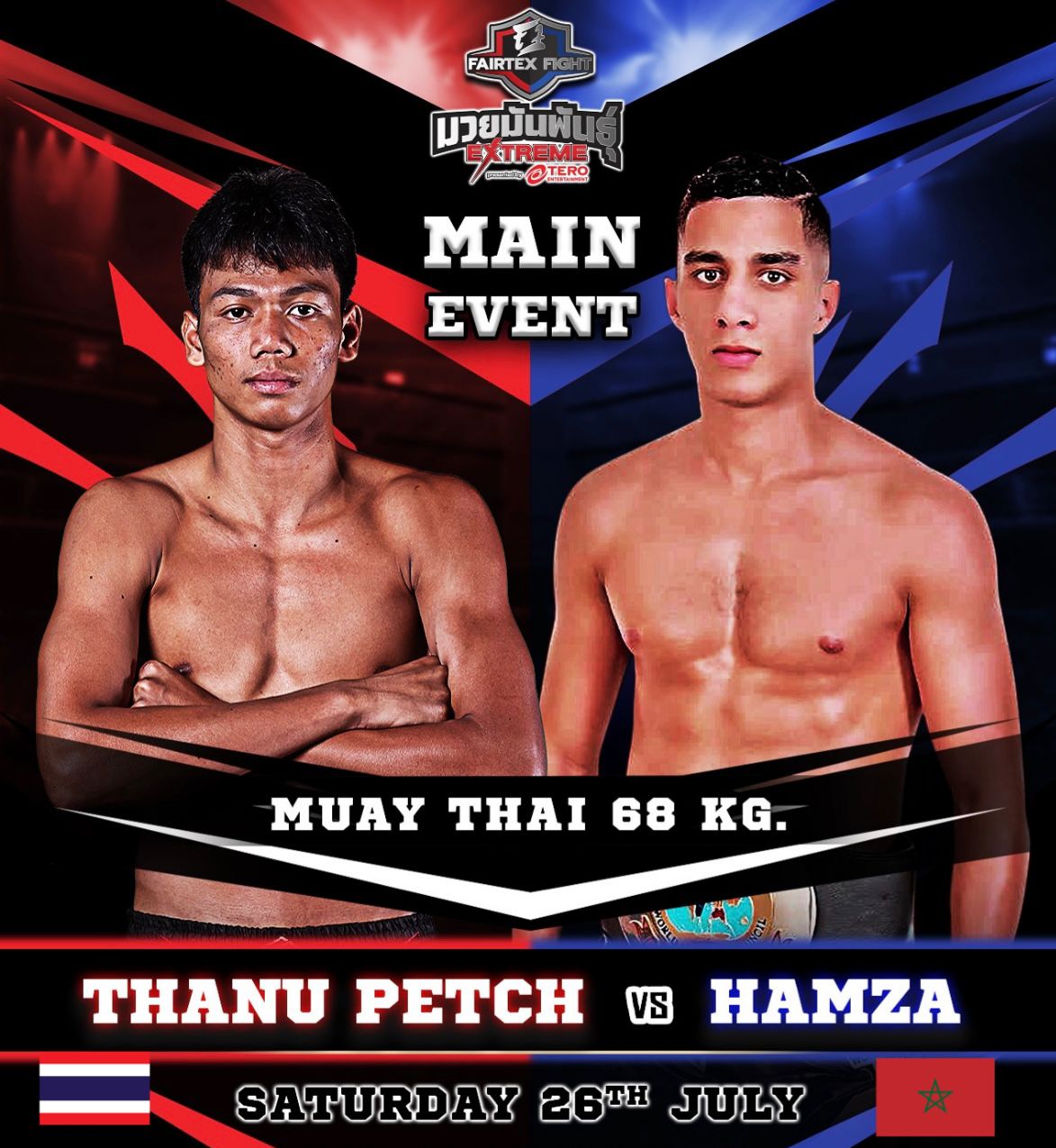 *البطل المغربي حمزة رشيد يواجه البطل التايلاندي تيكنو سوانغ ضمن سلسلة فايرتكس الدولية ببانكوك*