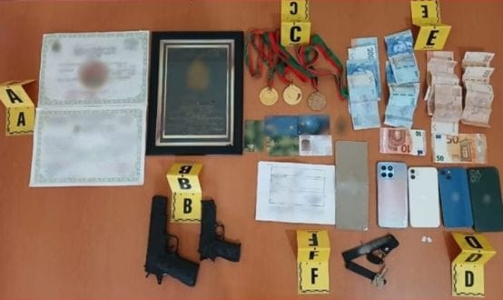 وقد اسفرت التحقيقات عن تحديد هوية المشتبه فيه الرئيسي وكذا الوسيط وتوقيفهما بمدينتي اكادير وتيكوين وحجز مسدس بلاستيكي وشارة شواهد تقديرية عسكرية مزيفة و مبالغ مالية بالعملة الوطنية والأجنبية يشتبه في كونها متحصلات نشاطهم الإجرامي بالإضافة إلى حجز دفتر الشيكات وبطائق بنكية وهواتف محمولة .