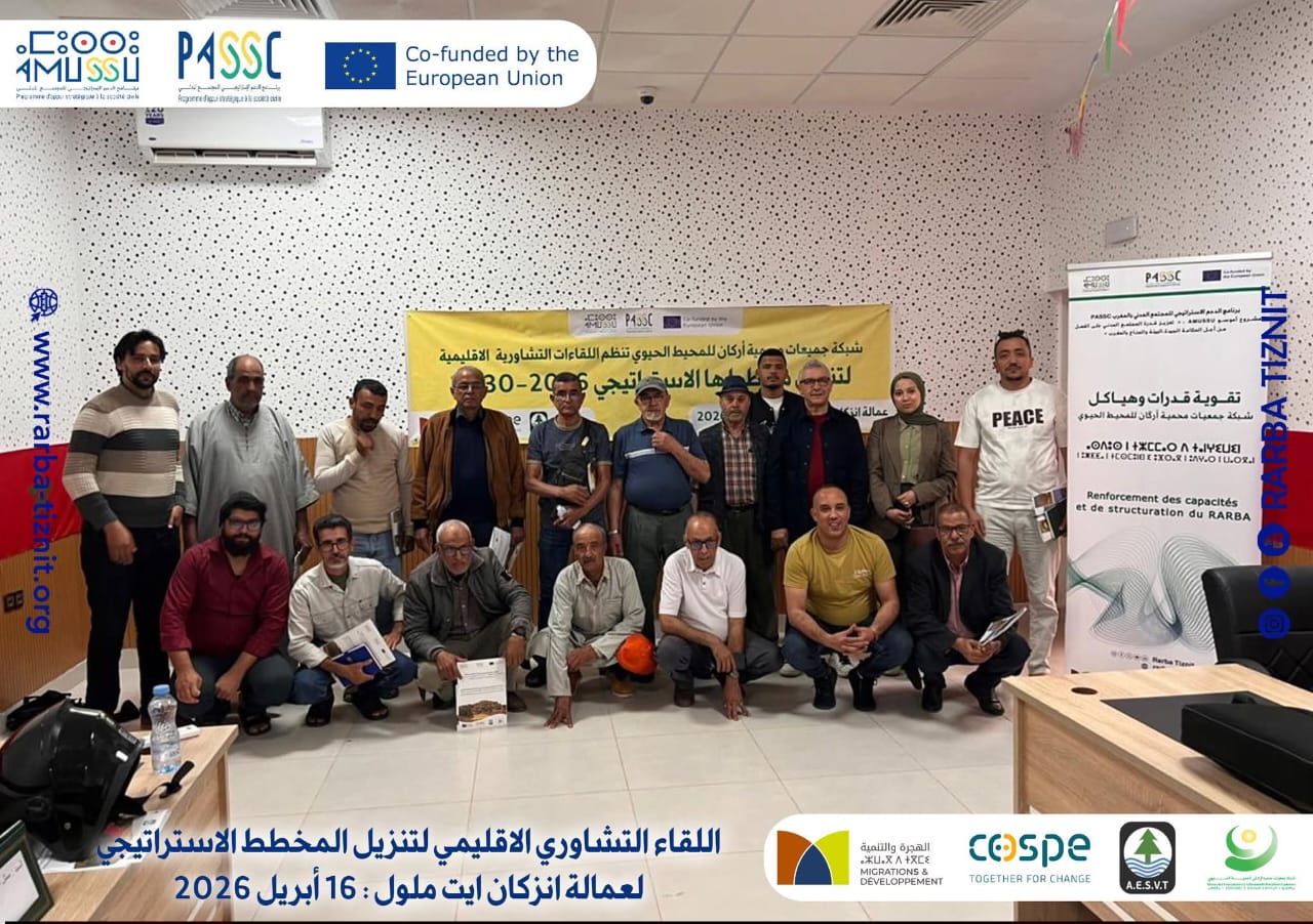 انطلقت بدار الشباب بجماعة أولاد داحو بعمالة إنزكان آيت ملول، يوم الأربعاء 16 أبريل 2026، أشغال المحطة الأولى من اللقاءات التشاورية لتنزيل المخطط الاستراتيجي للشبكة 2026-2030، وذلك في إطار مشروع “تقوية قدرات وهياكل الشبكة “، الذي تنفذه شبكة جمعيات محمية أركان للمحيط الحيوي، في إطار مشروع AMUSSU: «تعزيز قدرة المجتمع المدني بالمغرب على الفعل من أجل الحكامة الجيدة والبيئة والمناخ»، والمندرج ضمن برنامج الدعم الاستراتيجي للمجتمع المدني بالمغرب (PASSC)، الممول من طرف الاتحاد الأوروبي، والذي يشرف عليه ائتلاف يضم منظمة الهجرة والتنمية (M&D)، وجمعية مدرسي علوم الحياة والأرض (AESVT)، ومنظمة التعاون من أجل تنمية البلدان الناشئة (COSPE)، بمشاركة ممثلين عن مؤسسات عمومية، وفاعلين جمعويين، ومهتمين بقضايا التنمية المستدامة بمجال محمية المحيط الحيوي للأركان.